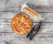 Hot salami, mushroom, capsicum, olives, prawns and bacon