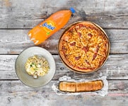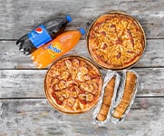 Ham, hot salami, mushroom, onion, capsicum, pineapple, olives and prawns