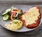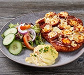 Roasted eggplant, onion, capsicum, fresh tomato, basil leaves and olives