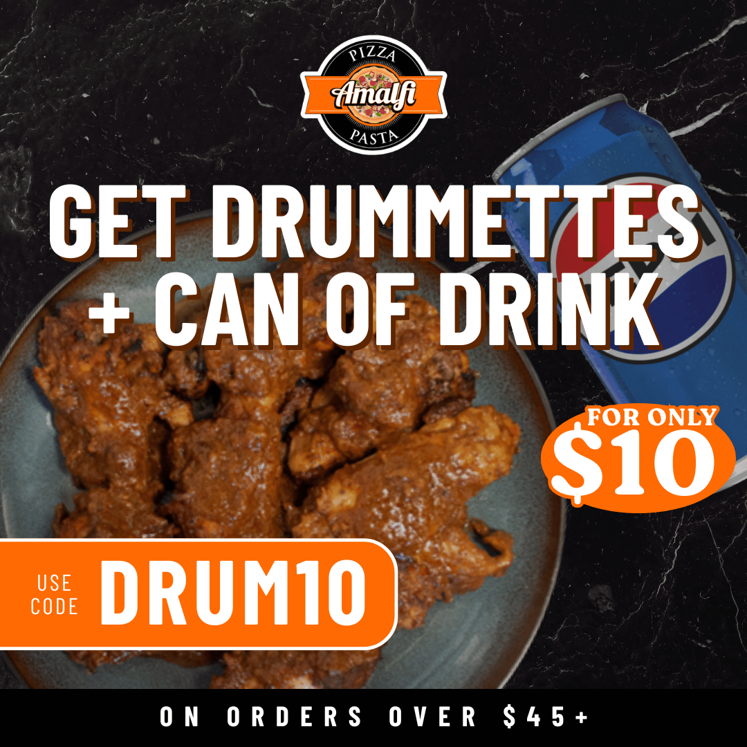 Tandoori Drumettes 6pcs$12.50Chicken drumettes marinated in a homemade Tandoori sauce and oven roasted to perfectionMeal Deals