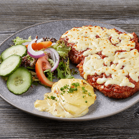 Standard Chicken Parmigiana$25.50Chicken Breast, Homemade Napoli Sauce, Mozzarella Cheese Served With Potato And Salad×