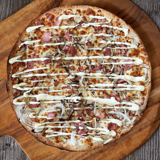 Carbonara PizzaGarlic Base, Mushroom, Onion, Cheese, Bacon and Creamy Sauce Mayo×