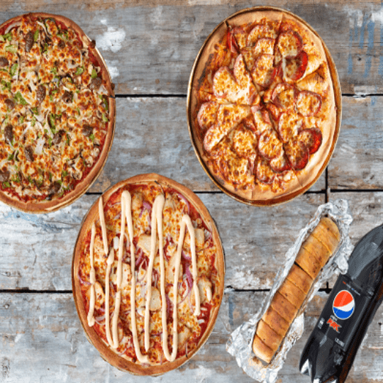 Deal 3$55.503 x Large Classic Pizza, 1 x Garlic Bread, 1 x 1.25L Bottle