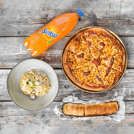 Deal 8$49.502 x Pasta, 1 x Small Garlic & Cheese Pizza, 1 x 1.25L Bottle