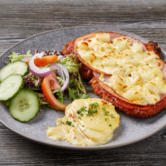 Hawaiian Chicken Parmigiana$25.50Chicken Breast, Ham, Pineapple, Homemade Napoli Sauce, Mozzarella Cheese Served With Potato And Salad×