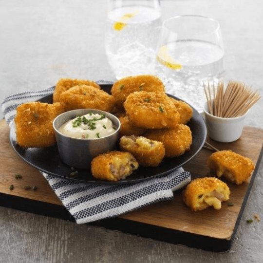 Mac n Cheese BitesAll The Gooey Deliciousness Of Cheese, Pasta And Bacon Encased In A Crispy Crumb. Mac & Cheese, Only Better And Bite Sized×