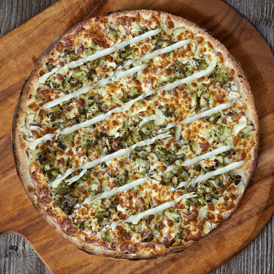 Garlic Base, Mushroom, Pesto Marinated Chicken, Cheese and Creamy mayoChoose one
