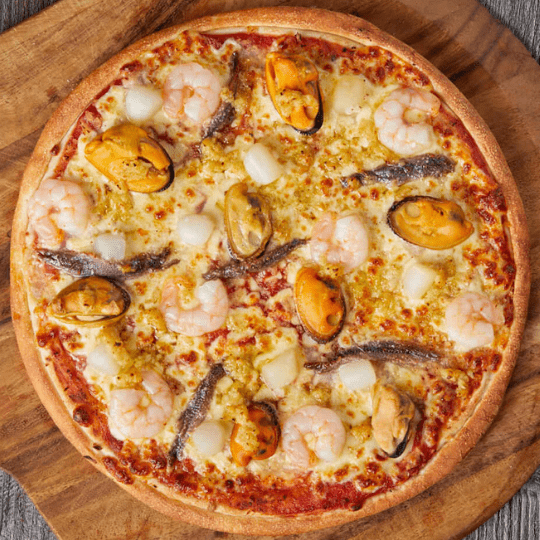 Hot Salami, Mushroom, Capsicum, Olives, Prawns And Bacon